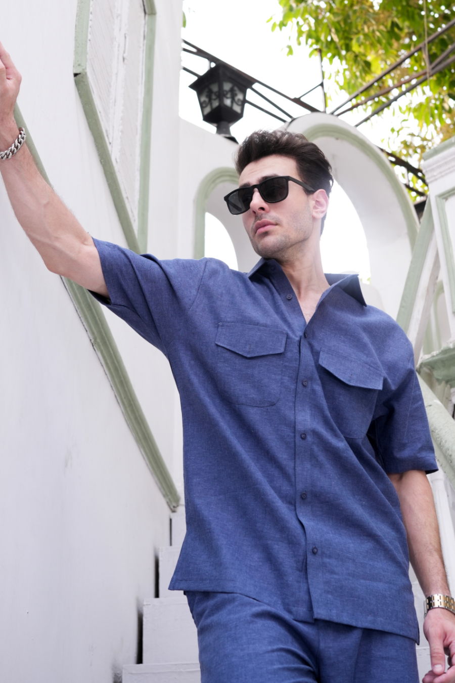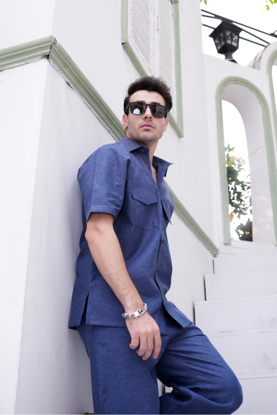 Make a smart statement with this blue modern suit in soft Irish linen. Designed for comfort and a clean look, it's perfect for everyday wear or a polished outing. The...