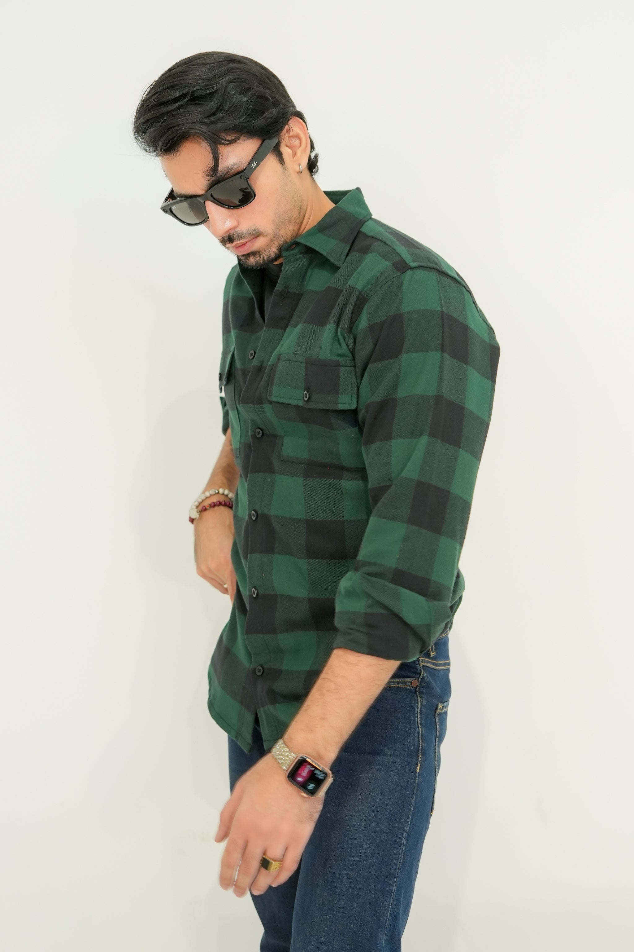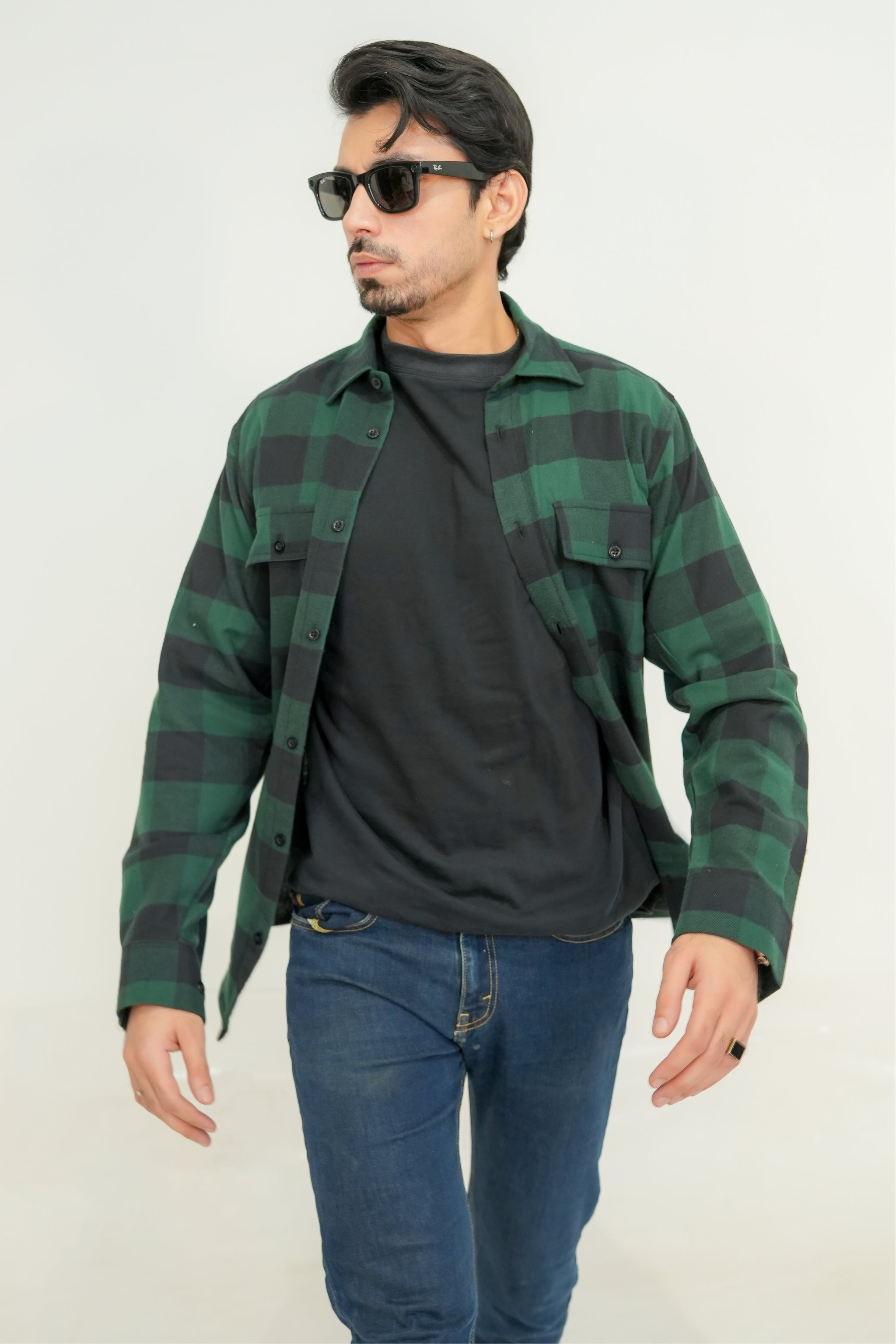 Soft, comfortable flannel shirt in a fern green and black check design. It gives a fresh, rugged look while keeping you warm and stylish for everyday wear.