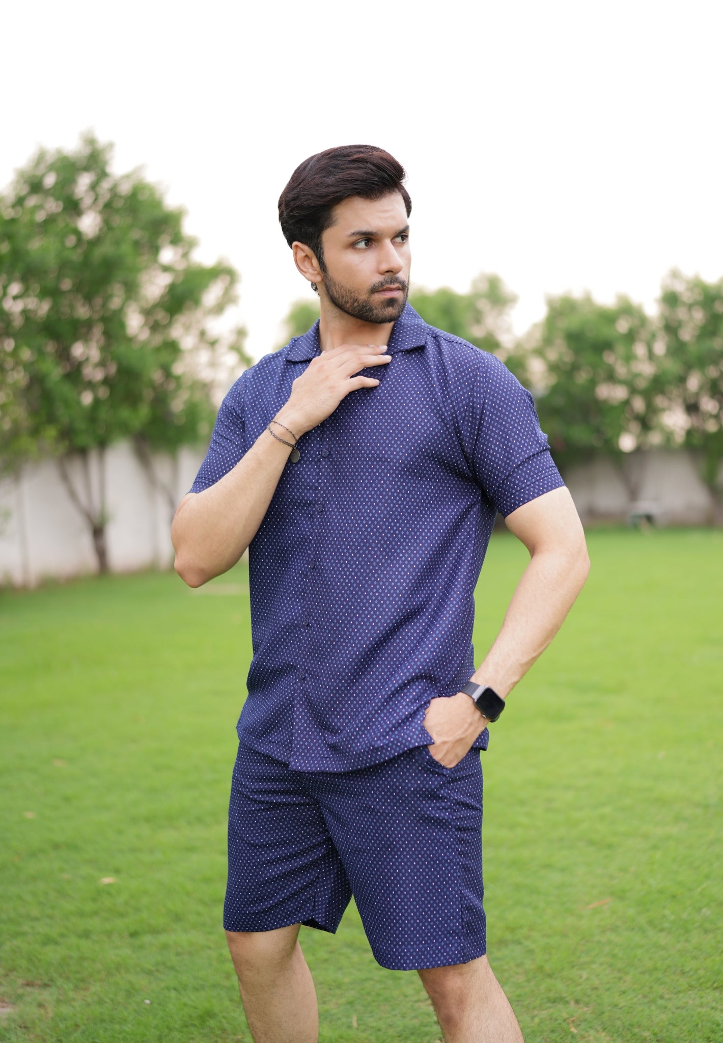 Designed for easy days, chill vibes, and effortless looks. With a smooth navy base and subtle print details, this set brings just the right amount of flair to your casual wardrobe.